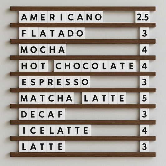 Tile Letter Menu Board5.0 / 5.0 (2) 2 total reviews Regular price From $331.00Regular priceUnit price / per$414.00Sale price From $331.00SALE